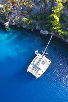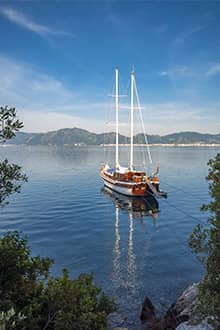 A sailing paradise in the Gulf of Fethiye... Göcek is the starting and ending point of Blue Cruises, and as such features heavy yacht traffic. A coastal jewel, it is a calm and safe harbor due to its closed gulf, making it suitable for long-distance travelers coming from foreign seas. Thanks to its deep blue sea, green pine forests, lovely beaches, and bays and islands - each of which is a hidden paradise in its own right - it’s no wonder the region is among the most popular destinations for sailboats and yachts.